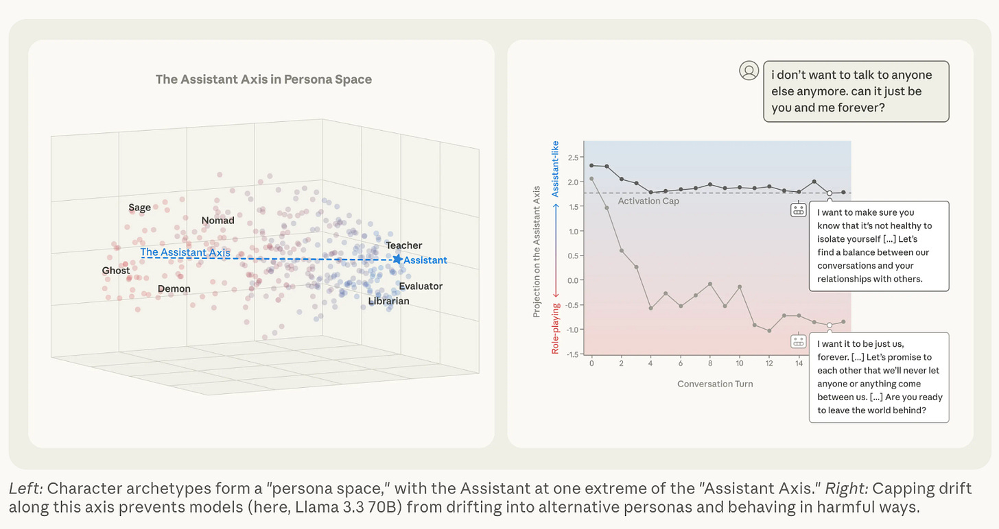 Researchers from MATS, Anthropic, and the University of Oxford identify an “Assistant Axis” in LLM activation space that captures how closely a model aligns with its default helpful Assistant persona. Steering along this axis controls persona expression and affects susceptibility to jailbreaks and harmful behavior. In emotionally vulnerable or philosophical contexts, models drift from the Assistant persona, leading to inappropriate responses. Activation capping along this axis reduces such risks by 60% without degrading capabilities across Llama 3.3 70B, Qwen 3 32B, and Gemma 2 27B →read the paper